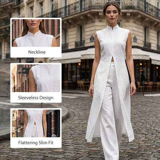 👗Damen 2-teiliges Set: Ärmelloses Oberteil + Weithose mit hohem Schlitz – atmungsaktiv & stilvoll