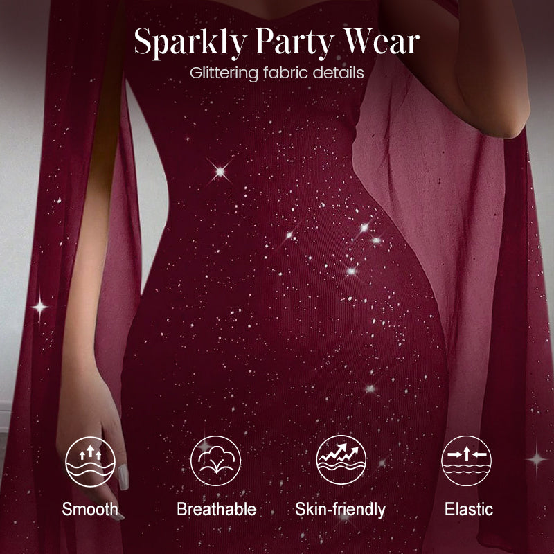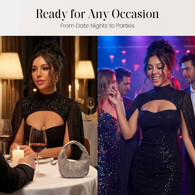 đ§Ą â¨Ausgeschnittenes, geripptes Kleid fĂźr Damen mit Chiffon-Cape