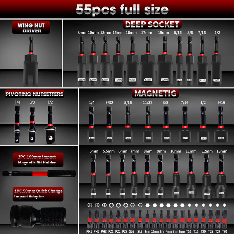 55-teiliges magnetisches Schraubendreher-Set für Schlagschrauber