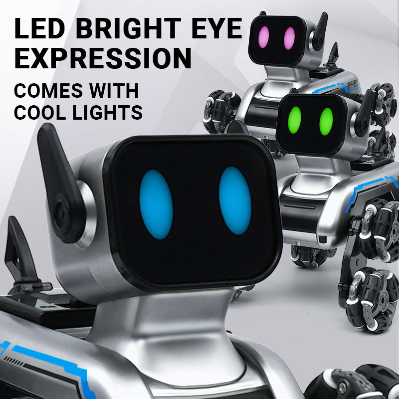 - Mit Mecanum-Stunträdern ist dieser Roboter so konzipiert, dass er hochwertige Tricks ausführen kann. Die Räder sind stoßfest, langlebig und verschleißfest und sorgen so für eine lang anhaltende Bespielbarkeit und Belastbarkeit bei rauer Handhabung oder Stürzen.