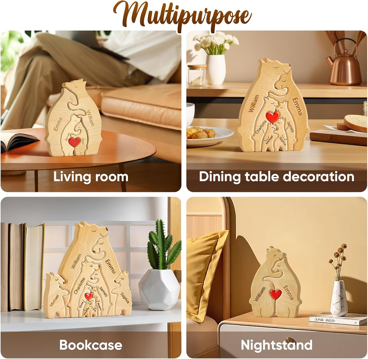 Lassen Sie die Kinder wissen, wie sehr sie für die Familie zählen – mit dieser Holzdekoration, auf der eine Bärenfamilie eng beieinander sitzt. Es ist eine einfache, herzliche Erinnerung an die Wärme, Liebe und Schutz, die sie jeden Tag mitbringen.