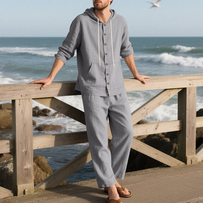 Männer lockere Kapuze Langärmel Top & Wide-Leg Hose 2-teiliges Set