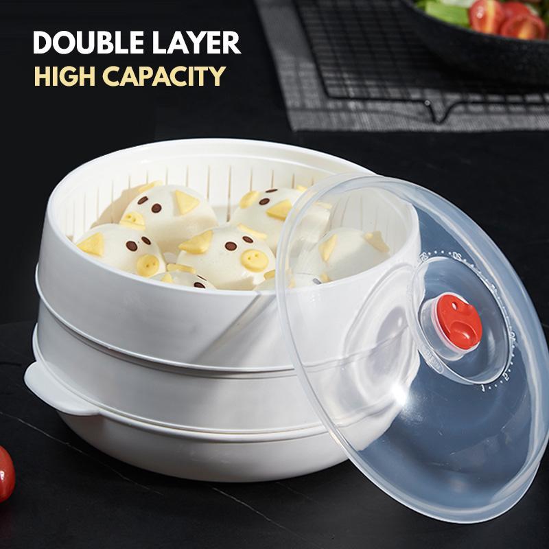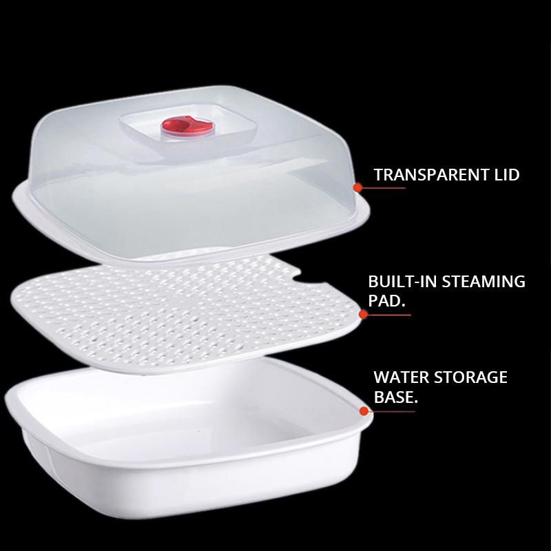 Unser Mikrowellen-Dampfer ermöglicht es jedem, Fisch, Meeresfrüchte, Gemüse, Dumplings, Dampfbrote und mehr schnell und einfach zu dämpfen. So bekommst du eine schnelle, leckere und gesunde Mahlzeit in kürzester Zeit. -