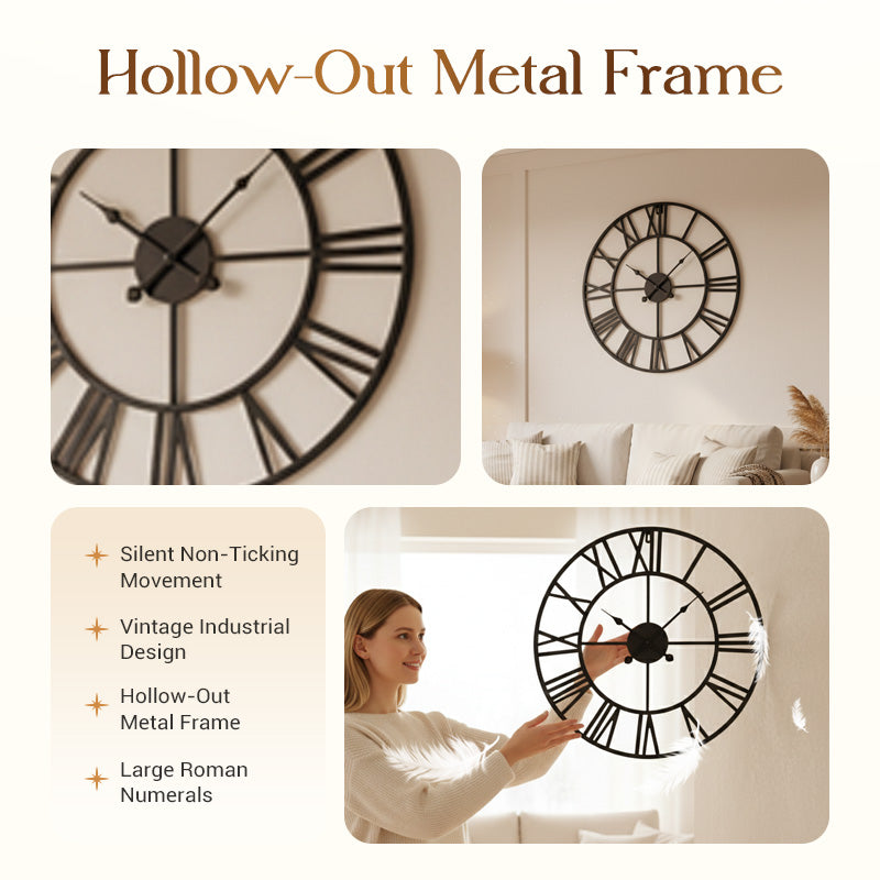 LANGLEBIGE METALLKONSTRUKTION – Investieren Sie in ein langlebiges Kunstwerk. Diese Uhr aus hochwertigem Eisen ist auf Langlebigkeit und Widerstandsfähigkeit ausgelegt und bleibt so über Jahre hinweg ein schöner und funktionaler Teil Ihres Zuhauses.