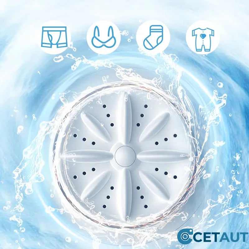 MULTI-DIMENSIONALE TURBINENDREHUNG - Diese innovative Mini-Waschmaschine verfügt über eine multidirektionale Turbinenrotation, die dafür sorgt, dass Ihre Kleidung aus allen Winkeln gründlich geschrubbt wird. Die kraftvolle Trommelwirkung garantiert eine bessere Sauberkeit und entfernt effektiv Schmutz und Flecken aus empfindlichen Textilien wie Unterwäsche und Socken.